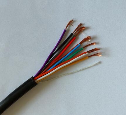 4)KFFP铜芯氟塑料绝缘和护套铜丝编织屏蔽耐高温控制电缆,450/750V, 2-37芯, 0.75-10mm²;,敷设在室内,有强电磁干扰的固定场合。